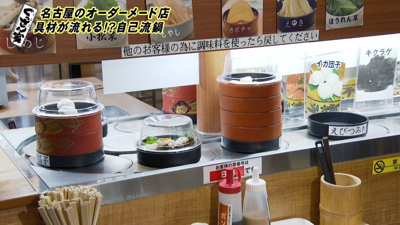 店内では回転寿司のようなレーンに鍋の具材が回っています。こちらのお店のシステムは“一人一鍋”で好きなスープ、好きな具材を選んで自分だけのオリジナル鍋を作れます。