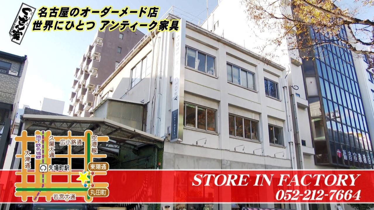 1階がショールームを兼ねたセレクトショップ、2階と3階がアンティークショップと家具製作のお店になっているということで「めっちゃ広いですね!これ一日で見られへんわ」と興味津々のぐっさん。