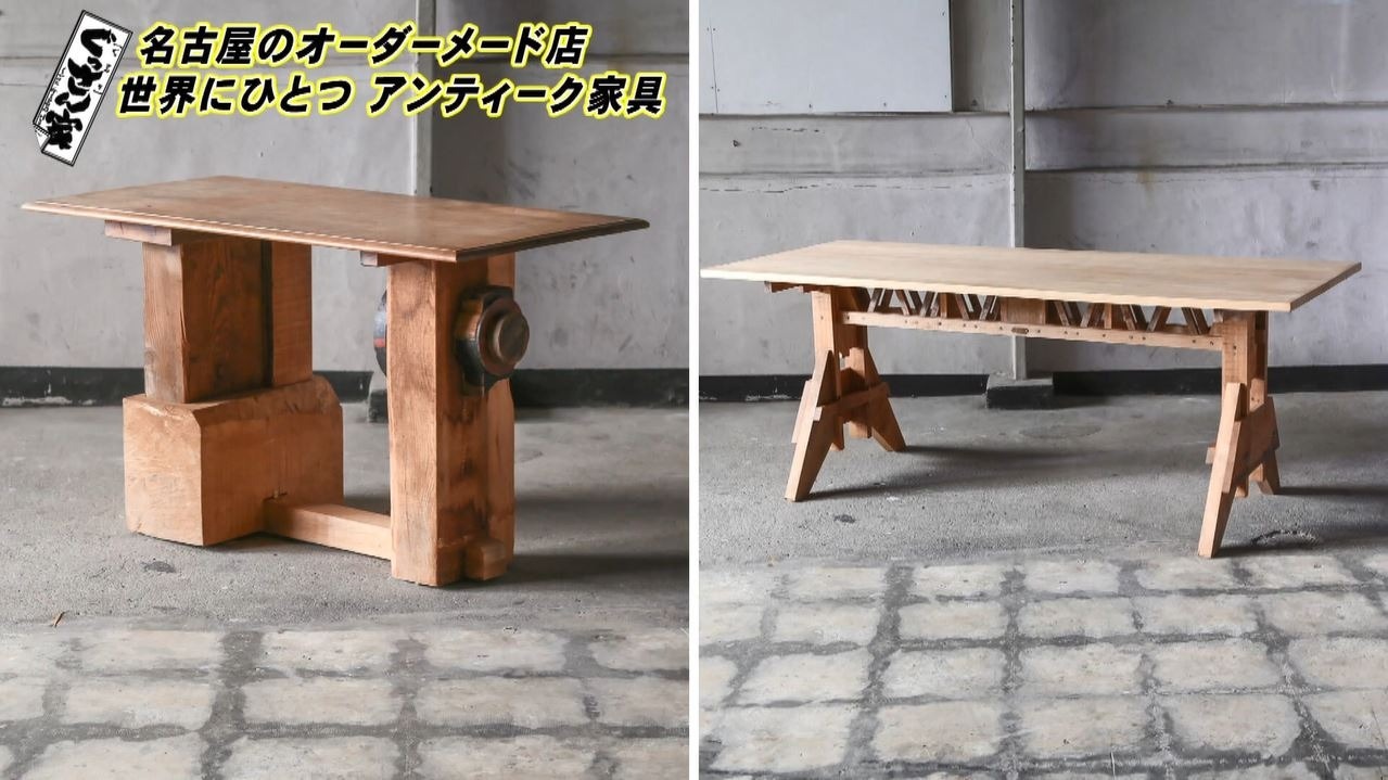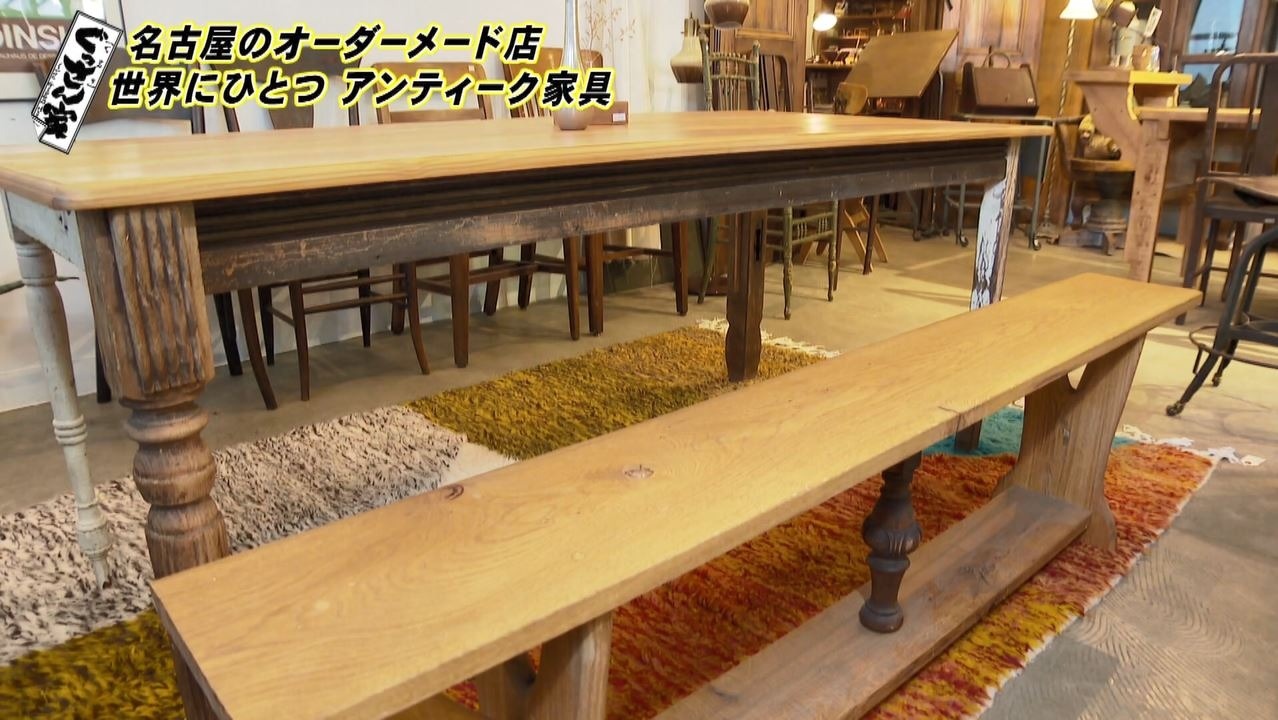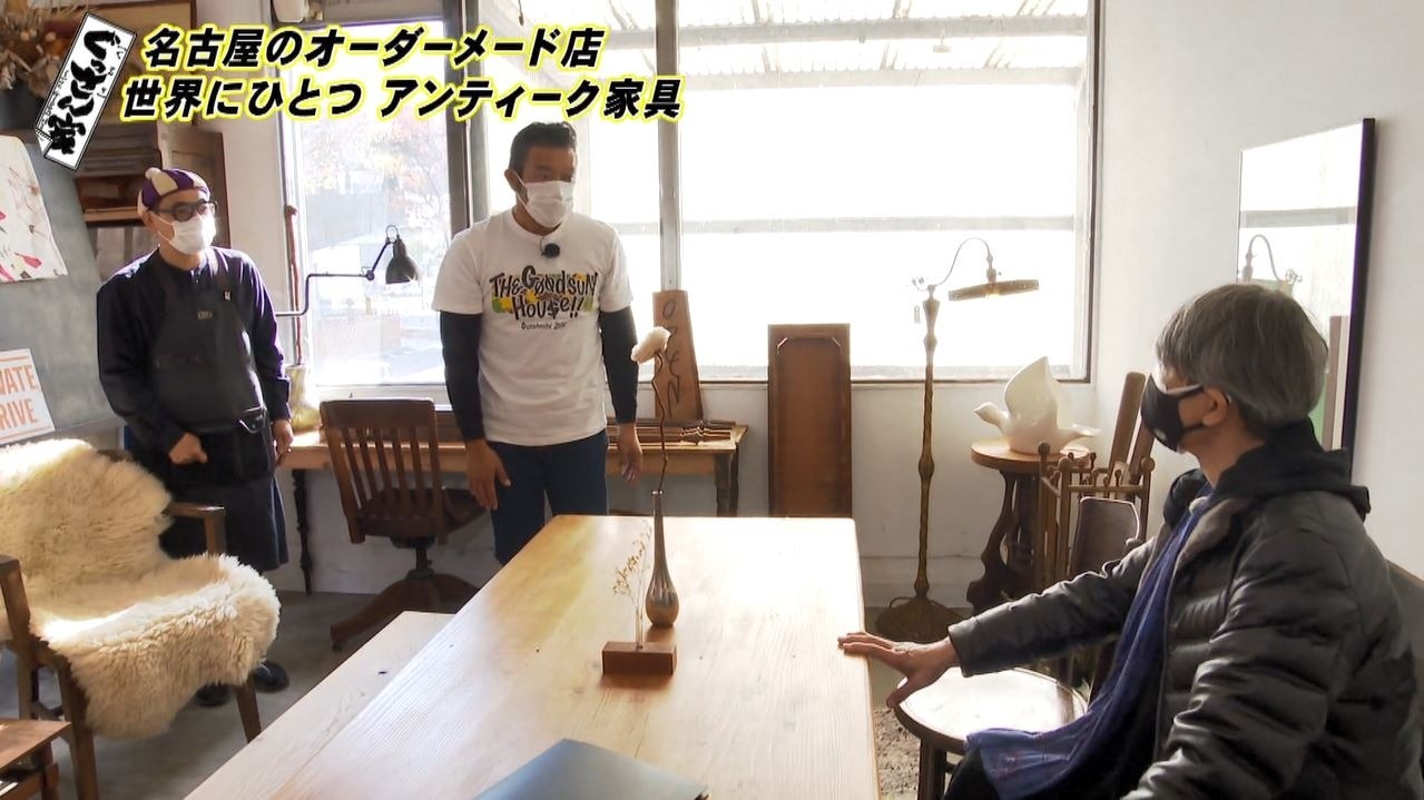 4本とも脚のデザインが違う机もあり、ぐっさんも「こんなの見たことない」とビックリ!代表の原さんによると「新たに何かを仕入れをしていくのではなくて、ある物のなかで作っていくのが楽しくて。イメージとしては残ったおかずとか、冷蔵庫の中にあるものでおいしいものを作ろうみたいな、そういう発想から家具を作り始めました」というコンセプトで古材を組み合わせた家具を製作しているそうで、ぐっさんも「素敵だな~。カッコいい!」と共感します。