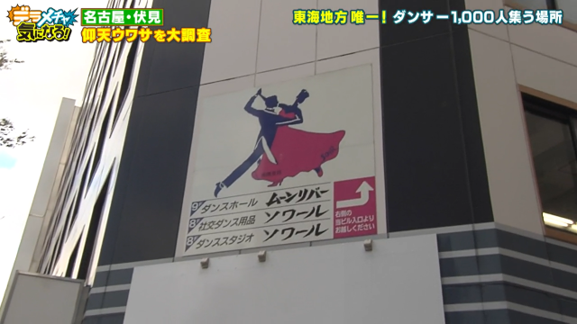 続いて検証する伏見のウワサは「ダンサー1000人が集う東海地方唯一の場所があるらしい」。広小路通りを歩いているとそれらしき看板を発見します。