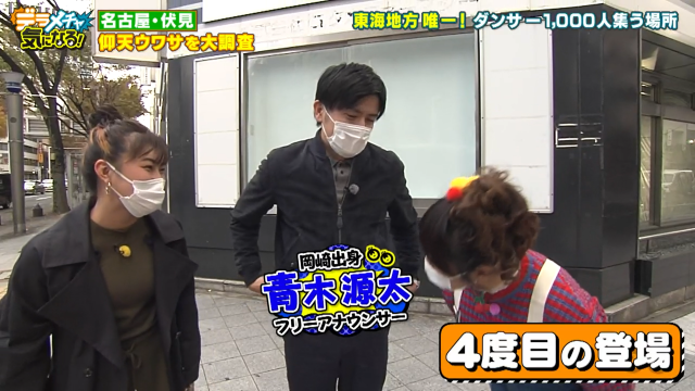 ここからは愛知県出身でおなじみのゲスト、フリーアナウンサーの青木源太と合流。いざ、ダンサー1000人が集う場所に潜入します。