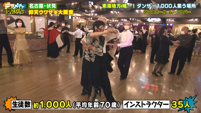 ビルの9階にある『ダンスホール ムーンリバー』。40組が一度に踊れるという東海地方では唯一、日本でも最大規模を誇る社交ダンスホールです。代表を務めるのはオールバックがビシッと決まった松浦忍さん。現役プロダンサー歴38年、数々の実績を残してきたた社交ダンス界のレジェンドです。