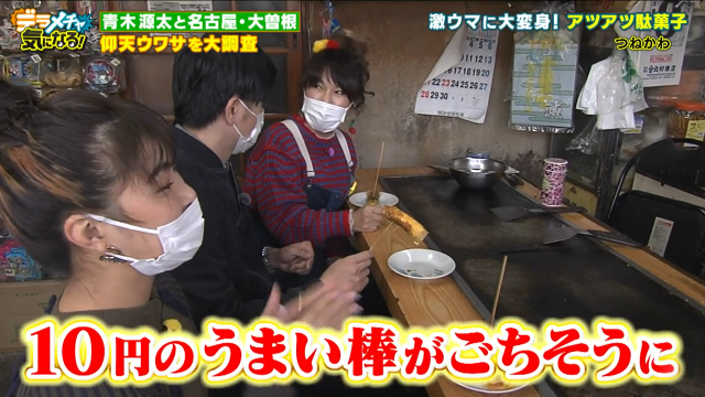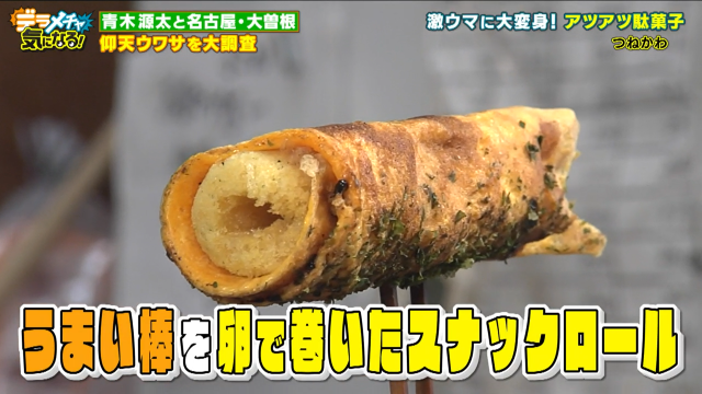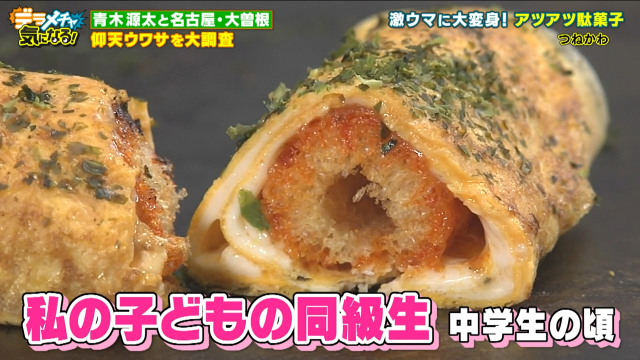 「うまい棒のサクサク感が絶妙に残っていておいしい。ソースとうまい棒の味付けも合いますね! 10円のうまい棒がご馳走に変わった」と青木アナ大絶賛です。大曽根で長年愛されている『スナックロール』の考案者は、お客さんとしてやってきた恒川さんのお子さんの同級生とのこと。