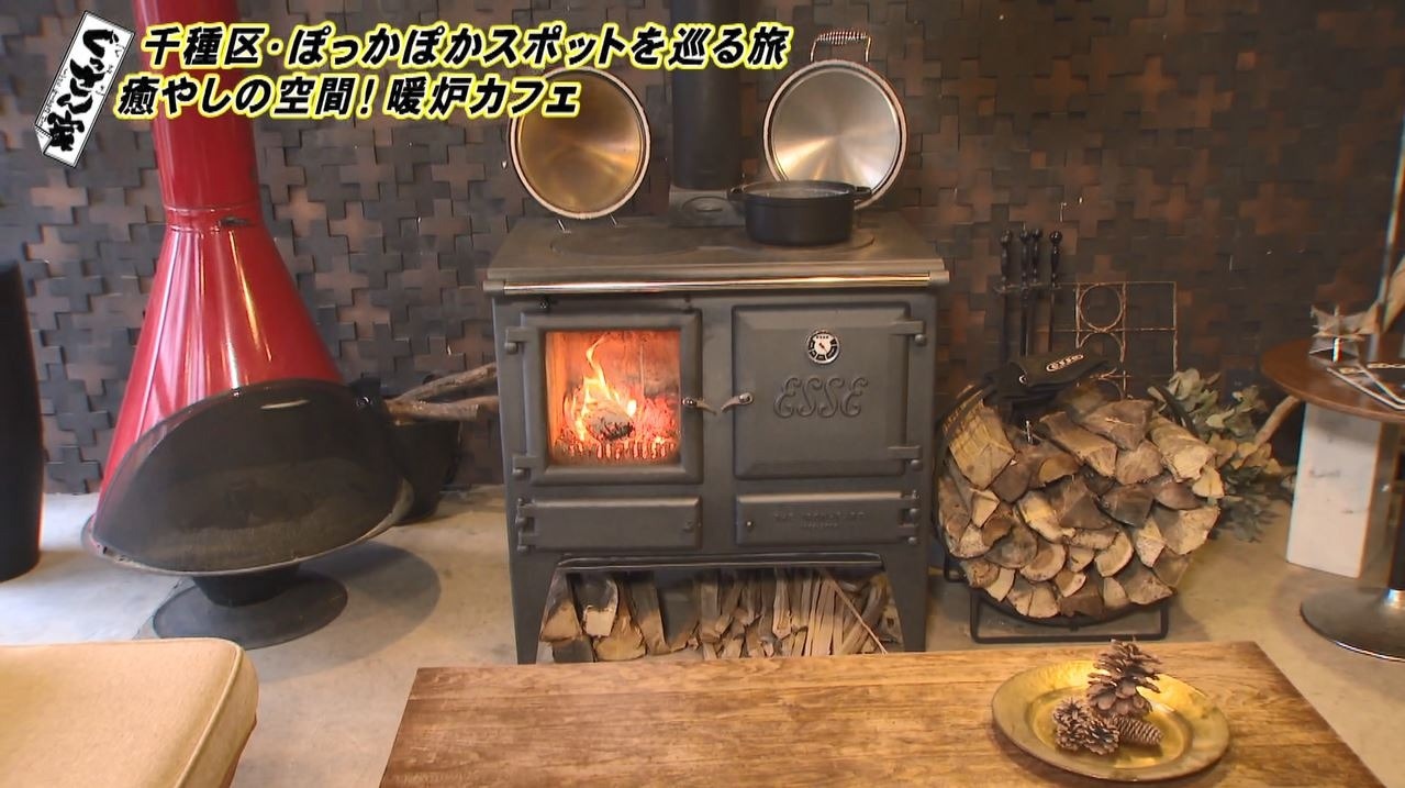 店内に入ってすぐに見つけたのが薪ストーブ!ぐっさんも「うわ!かっこいいな~!」とテンションが上がります。