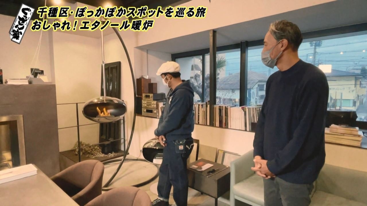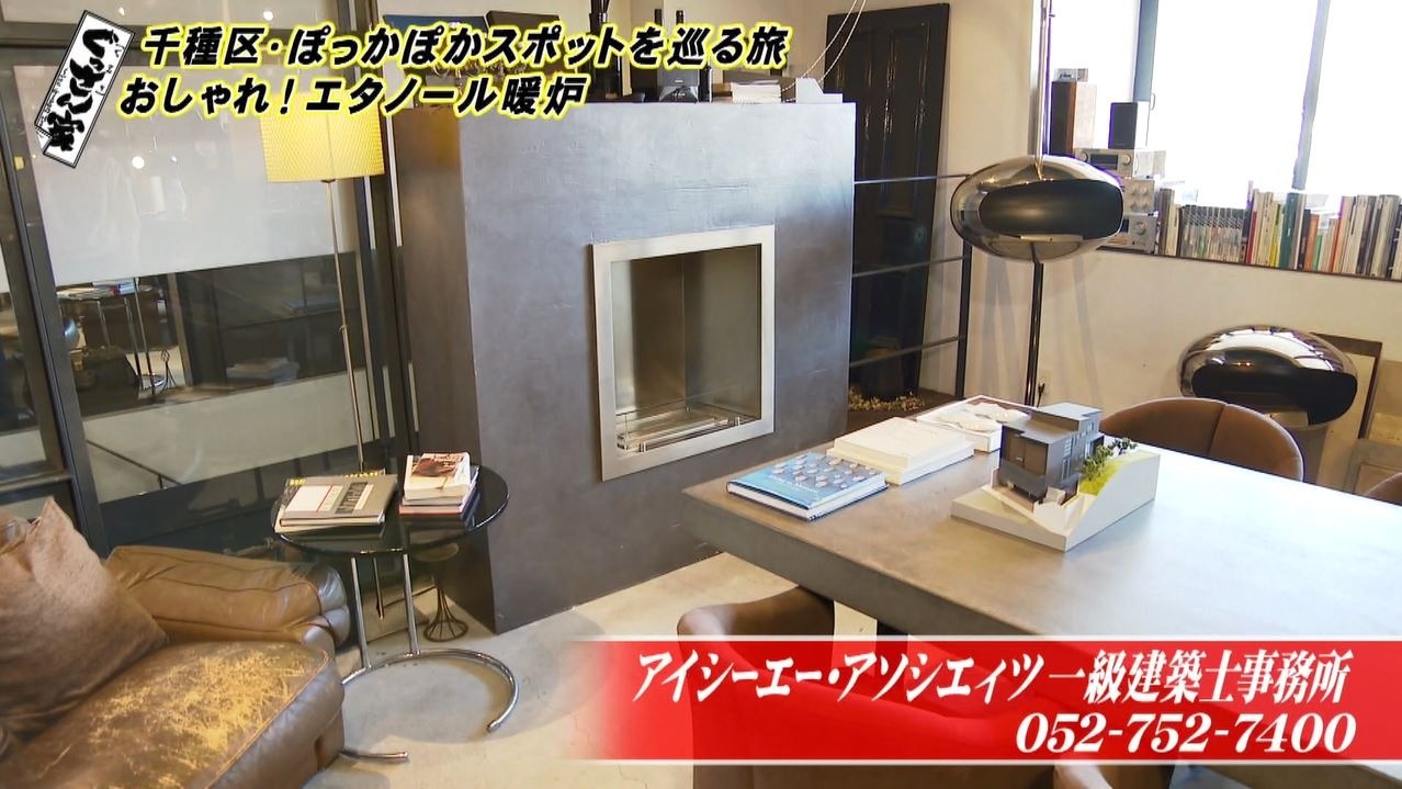 2階は建築設計事務所になっていて、最新のエタノール暖炉がいっぱい!家づくりを通して暖炉の魅力を広めようと、暖炉の輸入販売も行っているんです。スタイリッシュな見た目にぐっさんも「これ暖炉になるんですか?初めて見た」とビックリ!