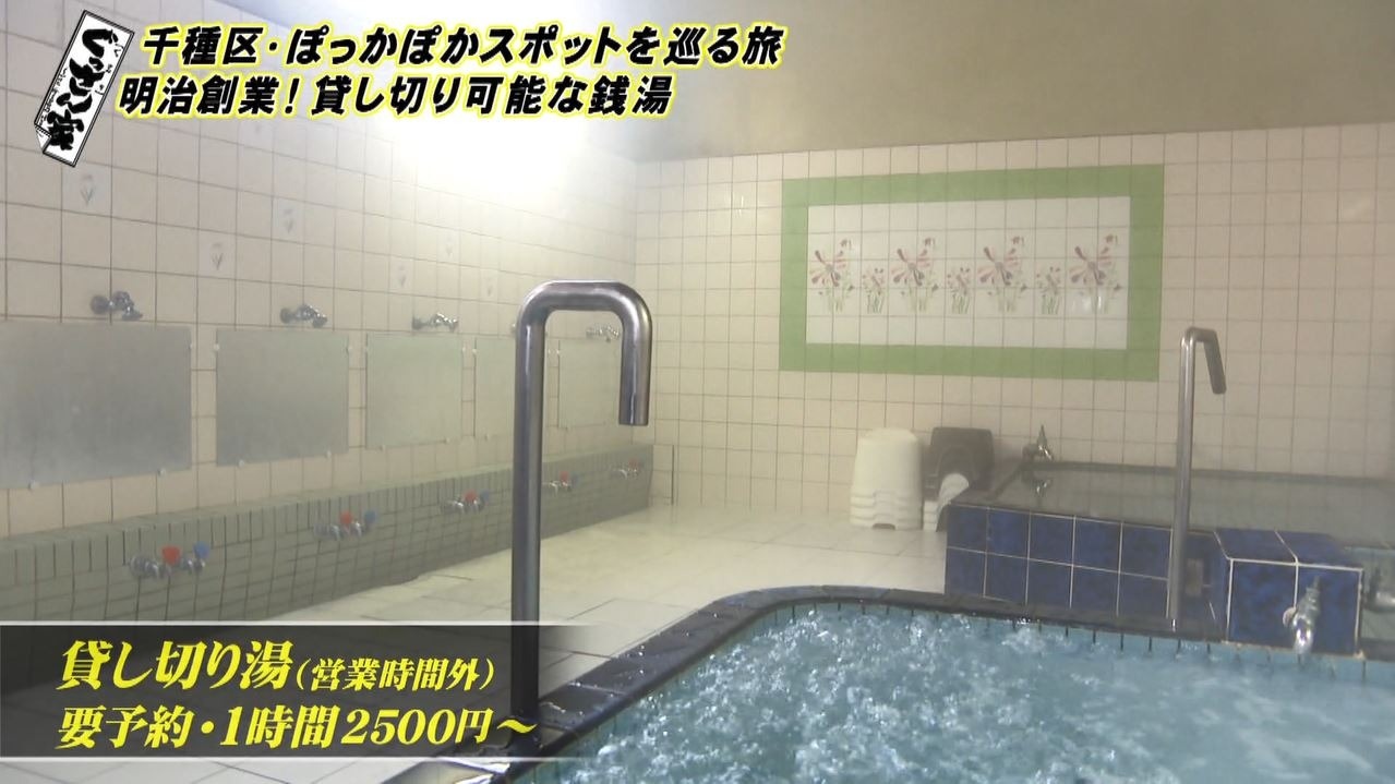 入浴料は1人440円ですが、営業時間外には1時間2500円から貸し切ることができるんです。今回はぐっさんもお風呂を独り占め! 心ゆくまで至福の入浴タイムを満喫します。