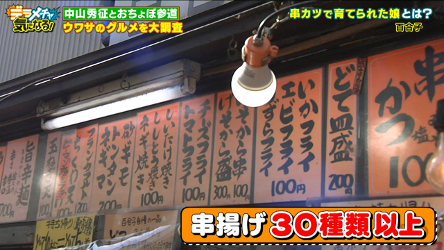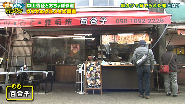 最後に三人が向かったのは「串カツで育てられた娘がいるらしい」とウワサのお店。串カツを食べて育ったということなのか話ながら、三人は串カツ激戦区の中でも人気のお店「百合子」を訪れます。
