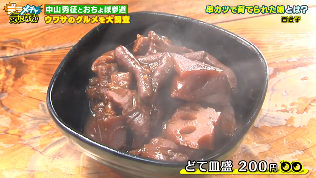 どては串を刺さない皿盛りスタイル。美味しさが隅々までしっかりと行き渡った味わいに、中山もご満悦です。