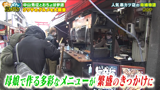 母と娘で切り盛りする人気串カツ店の「百合子」。しかし、ここに来るまでには母と娘の間に波乱の物語があったそうです。32年前にこのお店を始めた百合子さん、子育てをしながら女手一つでお店を守ってきました。そんな家で育った利恵さんのおやつは毎日串カツ。ごはんもお店のモノであり合わせていたそうです。