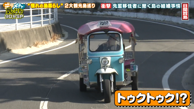 そんな魅力一杯の日間賀島には、移住を希望する人たちも多いとのこと。そんな移住を検討している人がぜひ仲良くなっておいた方がいい『ボス』がいるとのことで、早速お話を伺います。するとなんとやってきたのはトゥクトゥク!!