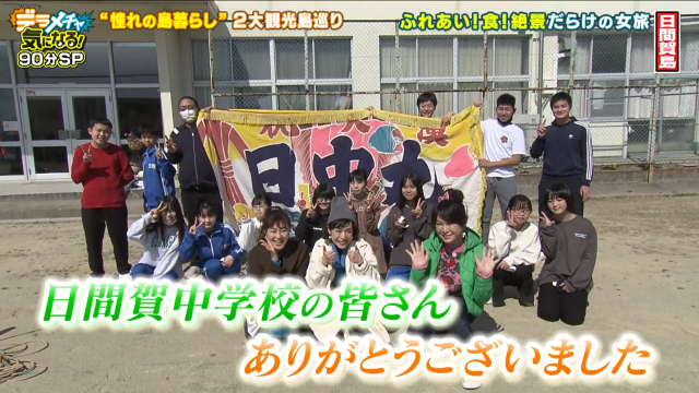 はるな、村上にゲストの久本を交えた三人が島をぶらり巡っていると、校庭で遊ぶ島の子どもたちを見つけました。