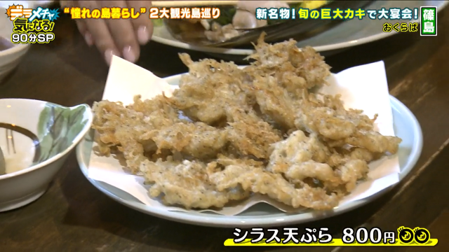 紹介した商品など:カキみそ(1人前)…1,200円※映像は4人前 シラス天ぷら…800円