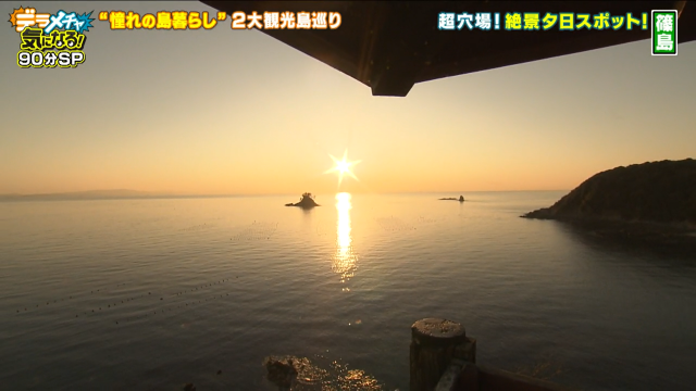 まるで海に光の道が通ったかのような大絶景!最高の夕陽に癒された四人。高橋も久本も本当に移住したくなる離島巡りとなりました。