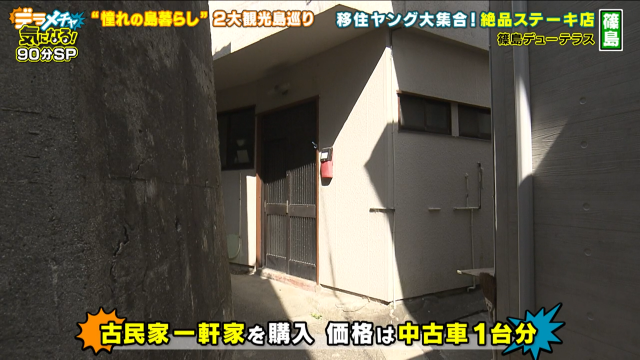 柔らかくジューシー、甘い脂がジュワーッと口の中に広がる美味しさに舌の肥えた高橋も大満足。久本も思わずギューッとなるほどの美味しさでした。愛知県武豊町が出身という東さんですが腰を据えて離島での仕事に取り組むために2LDKの一軒家を購入して今年の1月に離島へと本格的に移住。この一軒家の具体的な購入金額は内緒とのことですが離島では「中古車1台分ぐらい」の価格で手に入れることが出来るんだそうです。