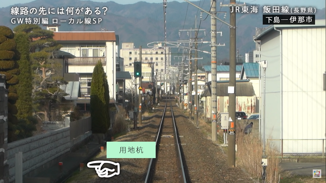 こうした場所には「用地杭」が設置され、線路用地と住宅の境界線を示しています。