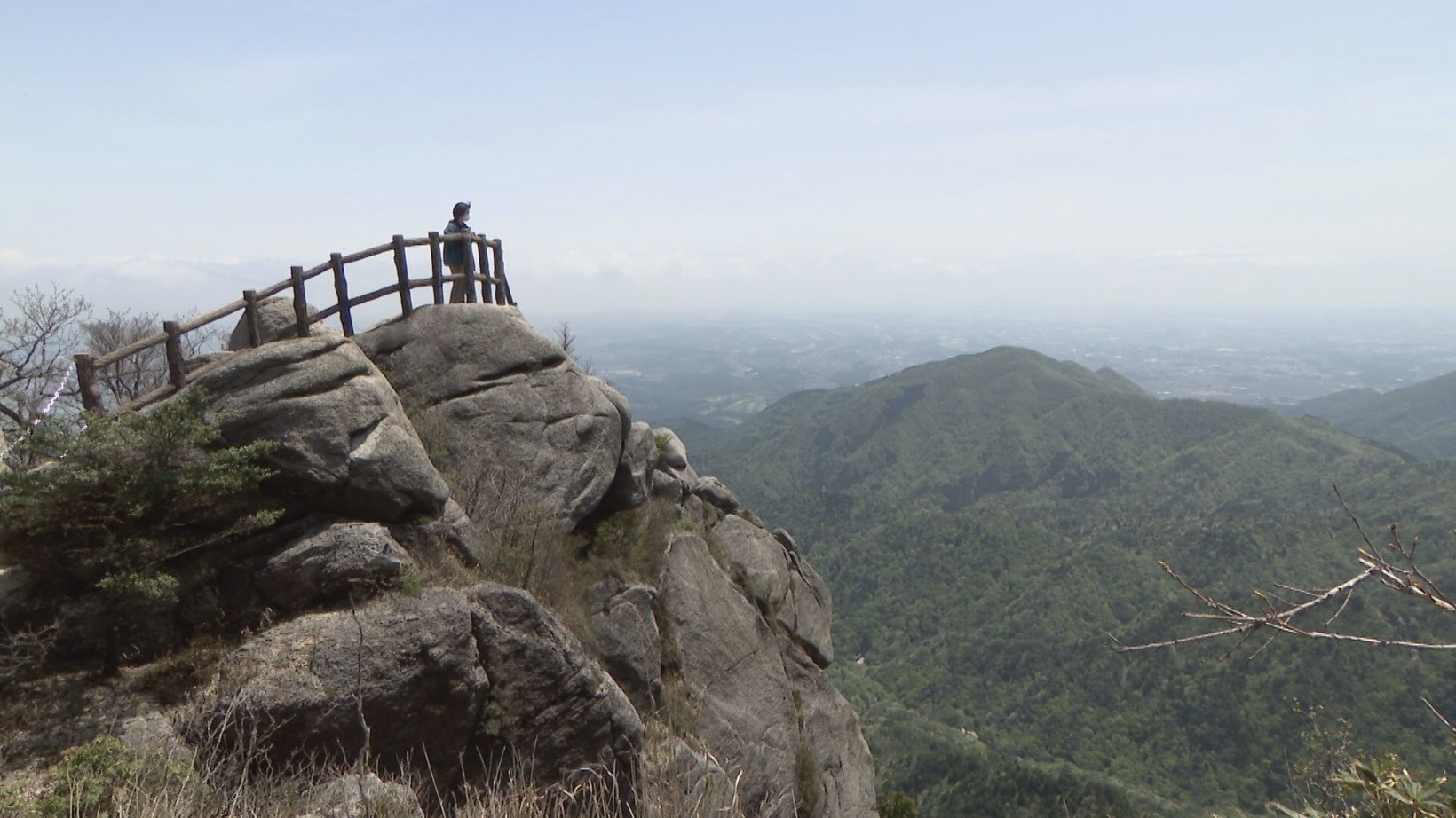 山上(さんじょう)公園駅へ到着し、少し上るとスリル満点の展望台・富士見岩があります。四日市コンビナートや伊勢湾を望み、気象条件が揃えば富士見岩の名の通り、富士山も見られます。