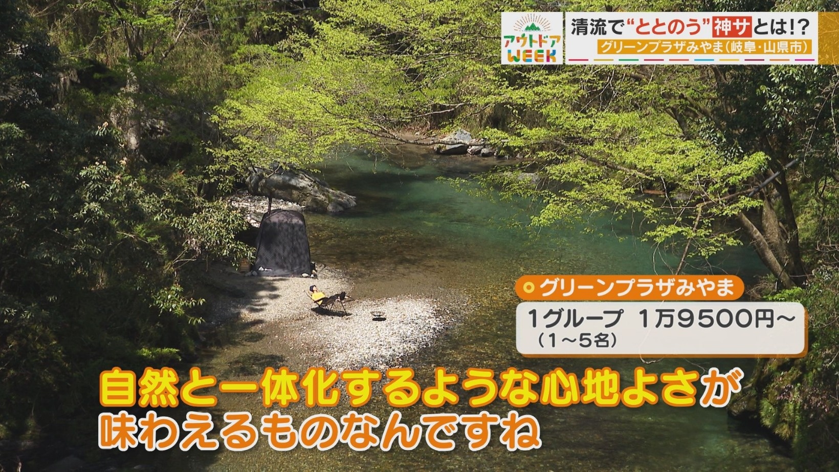 プラスアルファが楽しいキャンプ場、1か所目は「清流でととのうキャンプ場」です。岐阜県山県市の「グリーンプラザみやま」は、名古屋から車で1時間半。きれいな空気の中で、コテージに泊まったり、テントを張ったり、自由にキャンプを楽しめます。一番の魅力は美しいエメラルドグリーンの清流「神崎川」です!