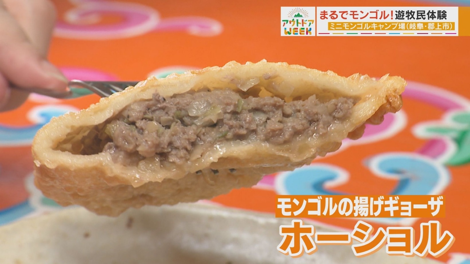 キャンプ場を経営する松野裕介さんの妻・サラさんはモンゴル出身。手作りのモンゴルの家庭料理が食べられるのも、このキャンプ場の魅力です。ホーショル(モンゴルの揚げ餃子)や、チャンスンマハ(骨付き羊肉の塩ゆで)など、本場の家庭料理が楽しめます。チャンスンマハを試食してみると、歯ごたえも味わいもしっかりしていて、とてもパワーがつきそうです。