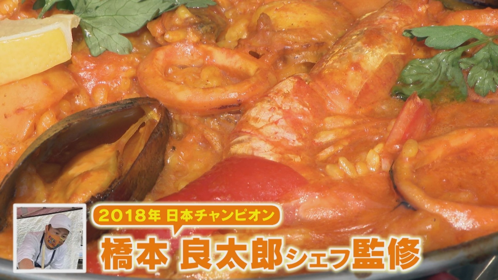 看板メニューは、全ての食事コースについている「パエリア」。パエリアを競う大会で、2018年の日本チャンピオンに輝いた橋本良太郎シェフが監修している逸品です。魚介の旨味をたっぷり吸ったお米は絶品!