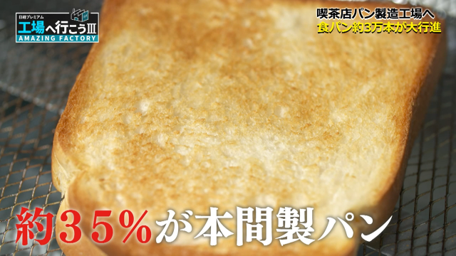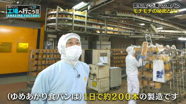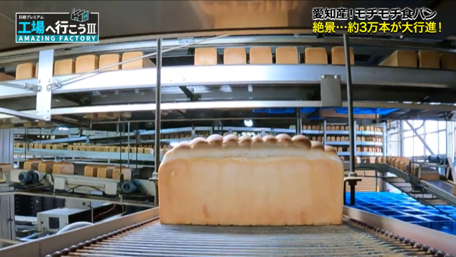 3万本の食パンが大行進!14年の歳月をかけて開発された愛知産小麦「ゆめあかり」が食パンになるまでを完全密着。東海エリアでシェアナンバーワンを誇るパンメーカー『本間製パン』への明らかになったのは、絶品モチモチ食パンを生み出す秘密の焼き方と意外な香りづけの方法でした。身近な商品からロケットの部品まで、ものづくりの素晴らしき世界を紹介する『日経プレミアム 工場へ行こうIII』。毎月第1土曜日の午後にテレビ愛知で放送中です。