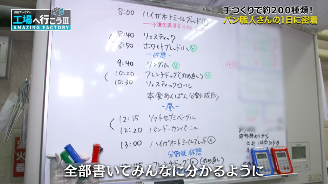パン作りは『段取り』が命。1日に10種類以上も作らなければならない上、出荷の時間は決まっていることから、細かくスケジュールを書き出して作業を進めていきます。