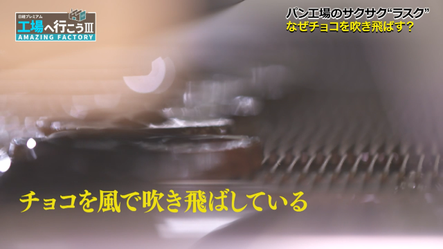 実はこれは、つけすぎたチョコレートを飛ばす大事な工程。チョコの厚みがありすぎるとサクサク感が出ないため、こうして風で余分なチョコレートを吹き飛ばしているんだそうです。食パンはもちろん、様々なパンやお菓子も手がける『本間製パン』、その美味しさの秘密はぜひ動画でもご覧下さい。