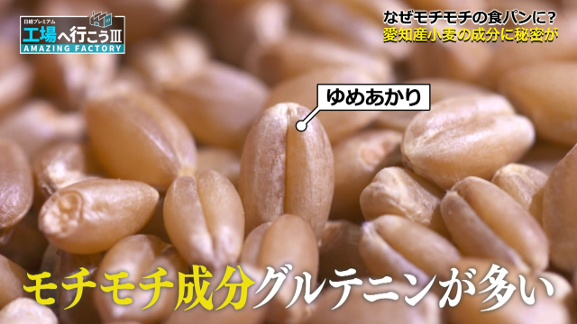 そしてこの胚乳に含まれているのがパンをもちもちにする『グルテニン』という成分。愛知産小麦の『ゆめあかり』はこの『グルテニン』が多く含まれている品種であり、パンにするのにピッタリな小麦です
