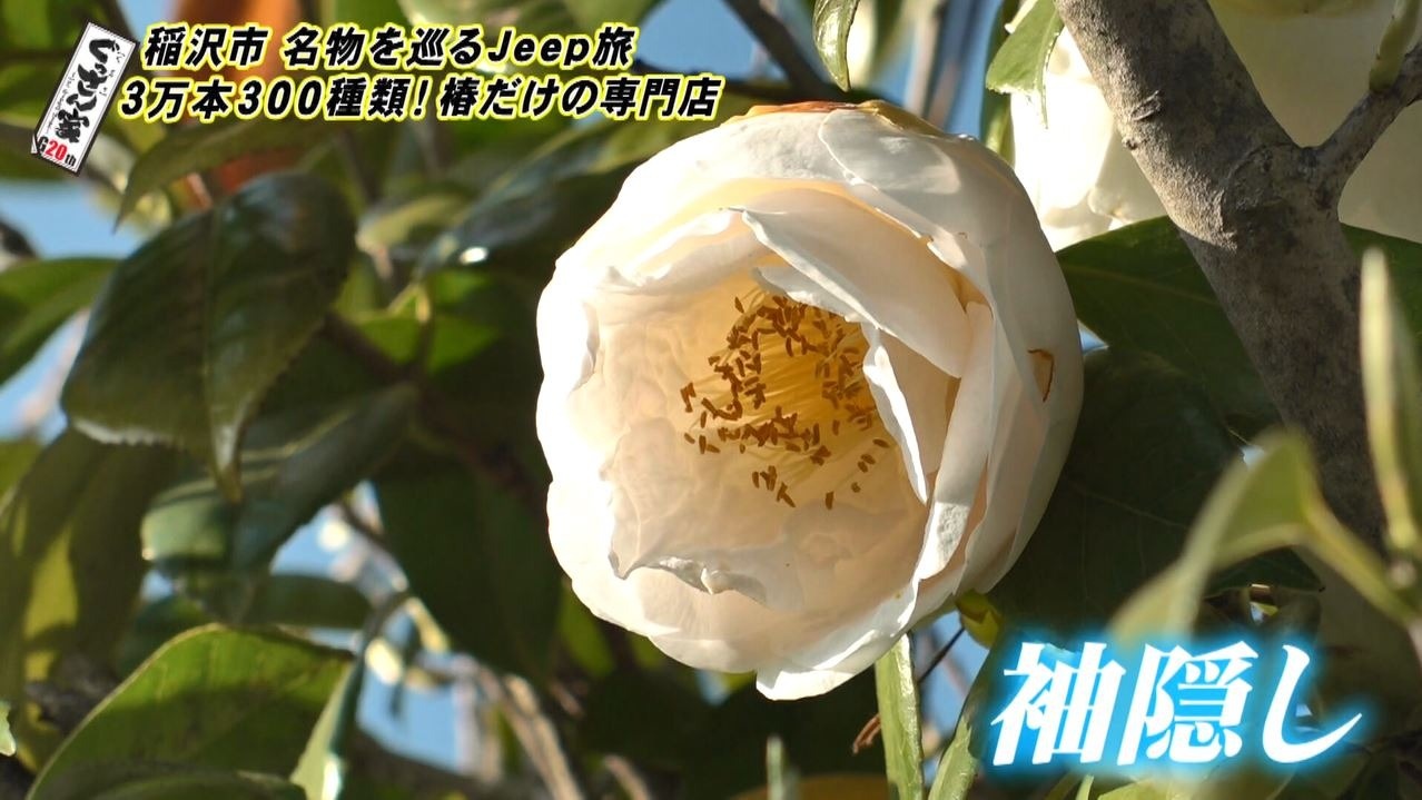 さらに予約制で園内の見学コース『椿の森』をガイドしてもらえるということで(見学料300円)ぐっさんも案内していただきます。徳川家秘伝の椿で、かつては名古屋城内に咲いていたというエピソードがある『袖隠し』など、奥深い椿の世界に魅了されます。
