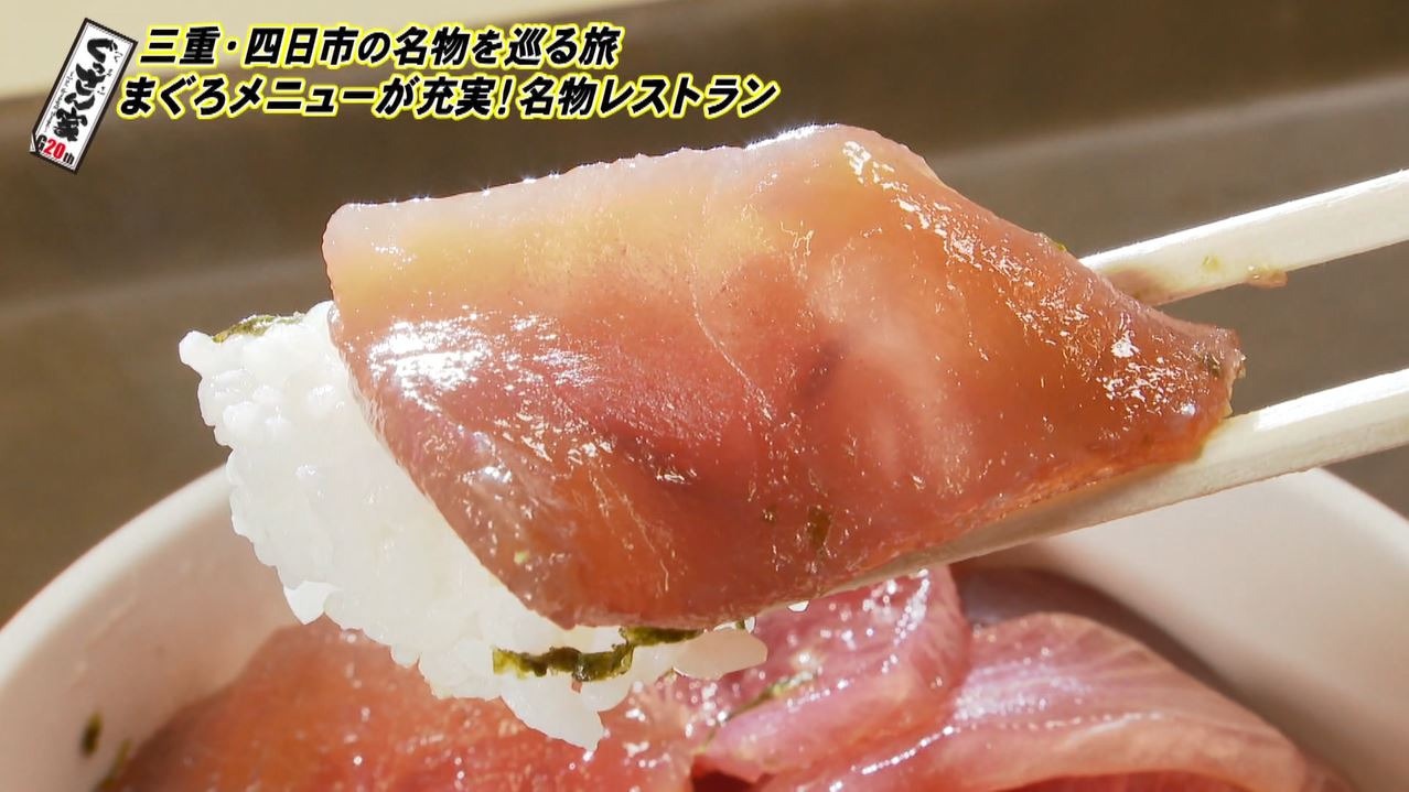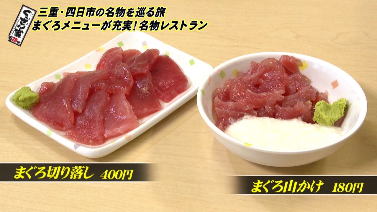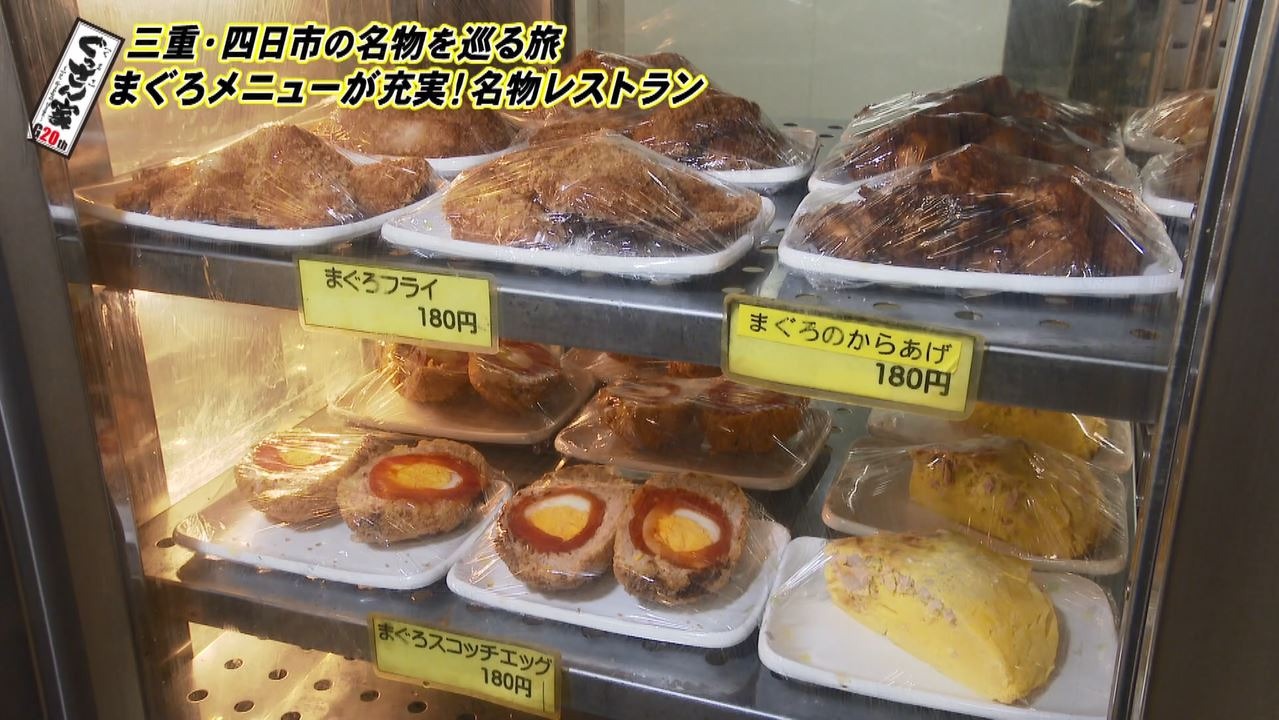 まずやってきたのは四日市で50年以上愛される『まぐろレストラン』。ぐっさんも以前に店の前を通りかかったことがあり、気になっていたそうで「めっちゃ行きたかったところです。やった!」とテンションが上がります。