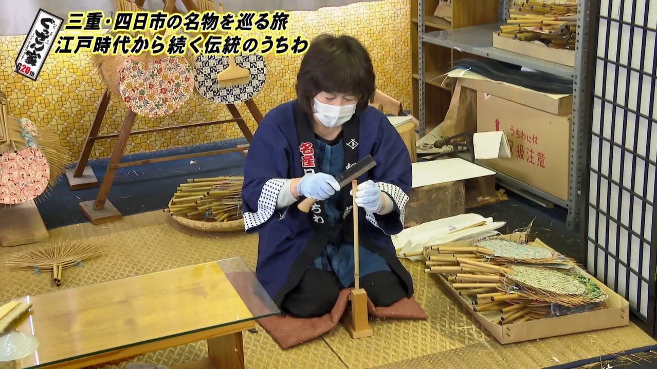 こちらで作られているのが三重県の伝統工芸品に指定されている『日永うちわ』。お店のある日永地区は江戸時代、伊勢神宮に向かう参宮街道と東海道の分岐点で、宿場町として栄えたエリア。『日永うちわ』は当時から伊勢参りのお土産として盛んに作られてきました。