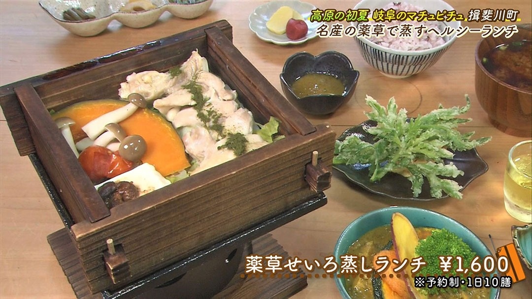 5種類の薬草の中から好きなものを1種類選ぶことができる『薬草せいろ蒸しランチ』(1600円)が人気です。 ※予約制、1日10膳限定 自分で選んだ薬草の香りが楽しめるせいろ蒸しは絶品!