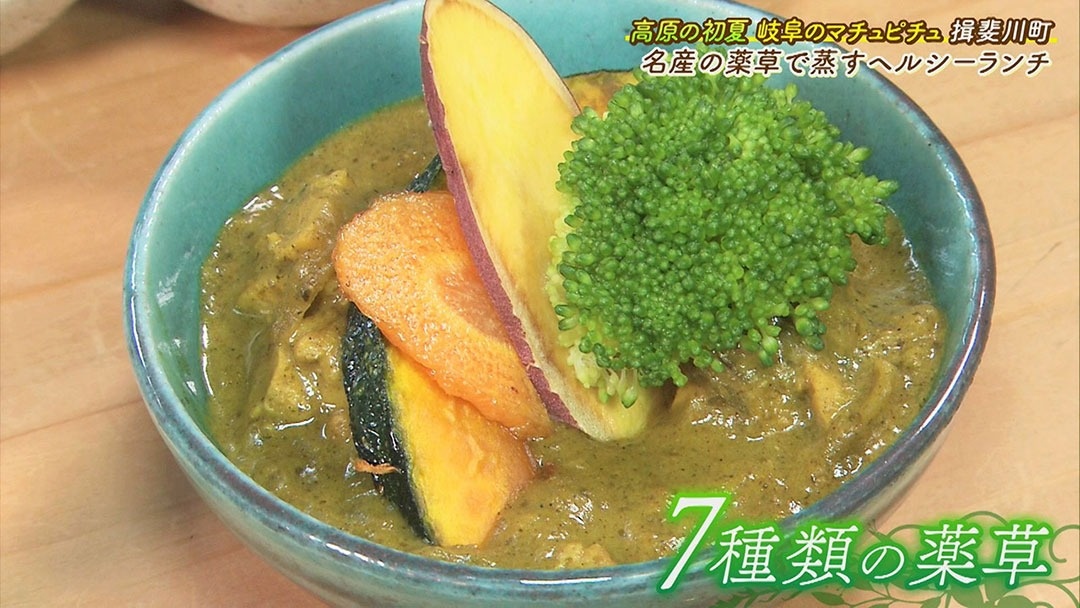 また、セットで付いているカレーにもドクダミやカキドオシなど7種類の薬草が使われており、香り豊かで体がポカポカに。さらに、その日に山で収穫し厳選した薬草の天ぷらなども楽しめます。