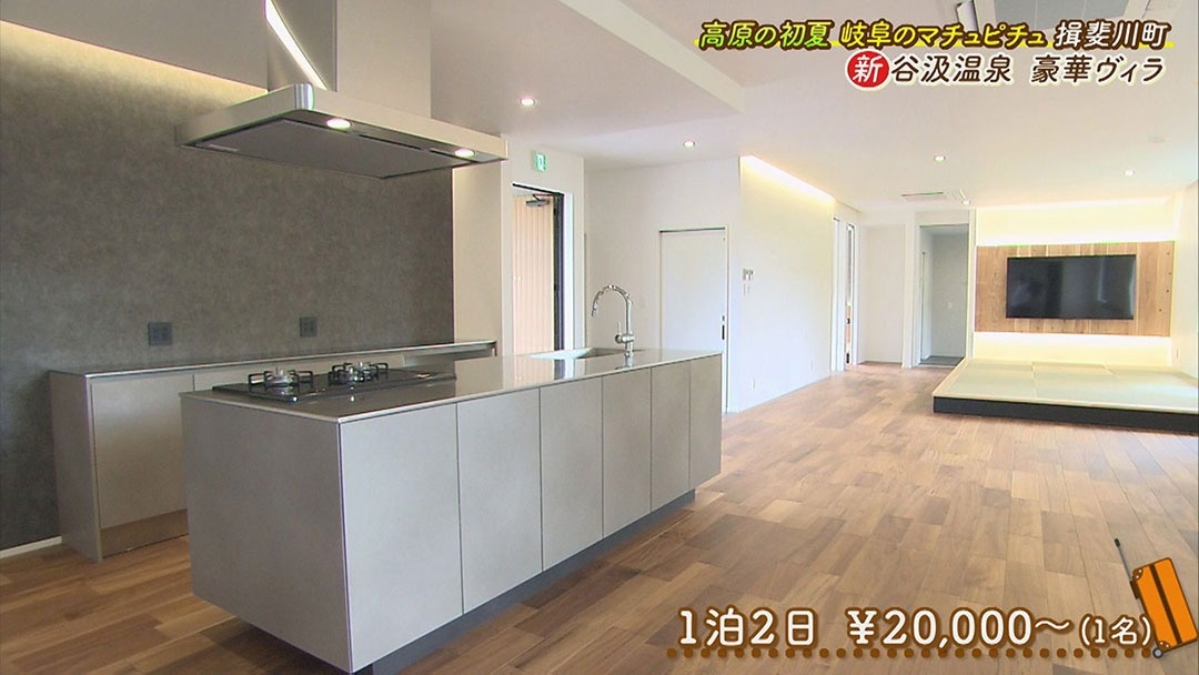 まるで羽を広げた岐阜蝶のような外観のヴィラには、最新のアイランドキッチンがあるので、食材を持ち込んで料理することができます。