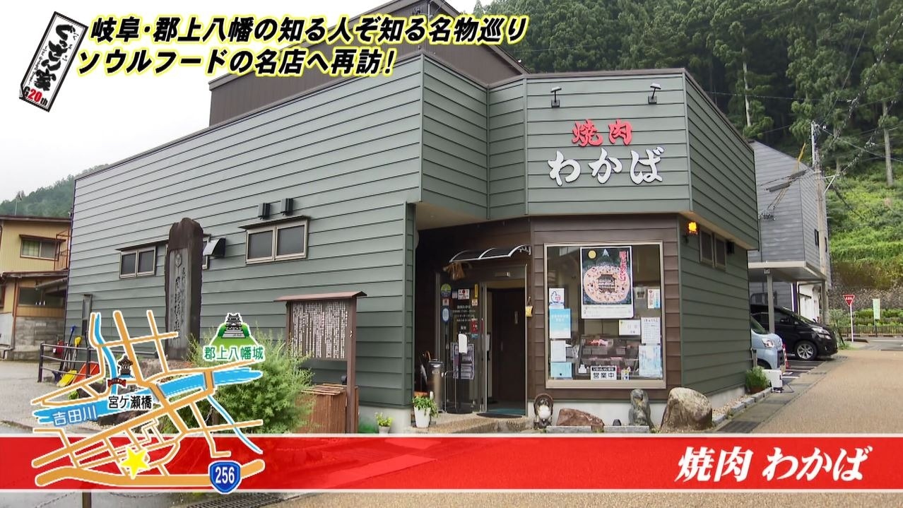 スタッフから「郡上八幡のソウルフードがある」と聞いてやってきたのは『焼肉 わかば』。実は14年前にも『ぐっさん家』で訪れているのですが、今年1月に改装をしたばかりでお店はピカピカ!「前はこっち側ですよ、入り口。小さい間口でね。あれはあれで渋かったんですよ」と当時を懐かしむぐっさん。