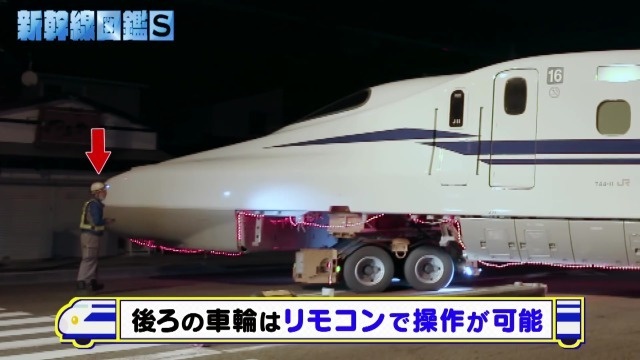 この日運んでいるのは16号車と15号車の2両。8日間かけて全部の新幹線を運ぶ予定になっています。ちなみに輸送のスケジュールやルートは『秘密』、いつどこで見られるかは分かりません。もし運がよかったら運んでる場面に遭遇できるかもしれませんね。