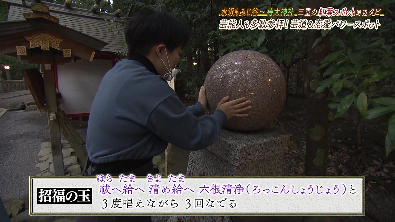 また、芸道上達のパワースポットとしても名が高く、“天之鈿女命(あめのうずめのみこと)”さまをお参りしたら、縁結びや夫婦円満にご利益があるとされている“招福の玉(しょうふくのたま)”を「祓へ給へ 清め給へ 六根清浄(ろっこんしょうじょう)」と3度唱えながら3回なでるのがよいとされています。