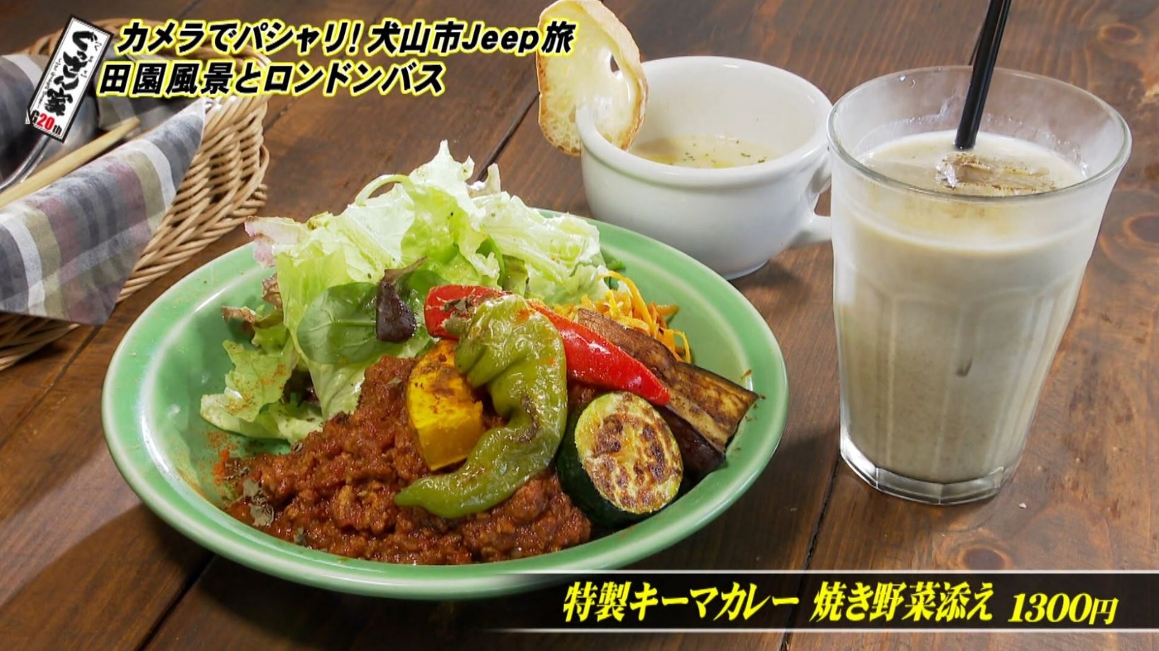 注文したのは『特製キーマカレー 焼き野菜添え』(1300円)。カレーは10種類のスパイスをブレンド。たっぷりのトマトソースを加え、じっくり煮込んでうまみを引き出しています。オーブンで焼いた季節の野菜をたっぷりのせて見た目も鮮やかに。スープとドリンクがついたボリューム満点のセットです。