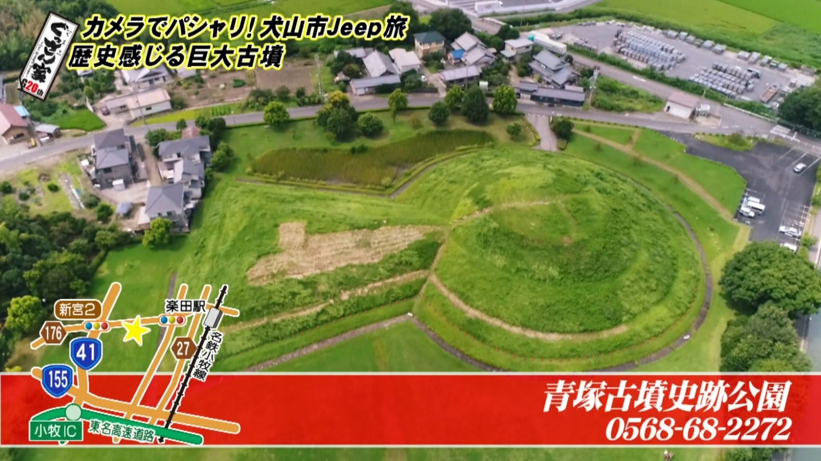 続いて立ち寄ったのは『青塚古墳史跡公園』。1300年以上前の古墳時代に作られたと言われる前方後円墳は全長123m。愛知県屈指の大きさです。