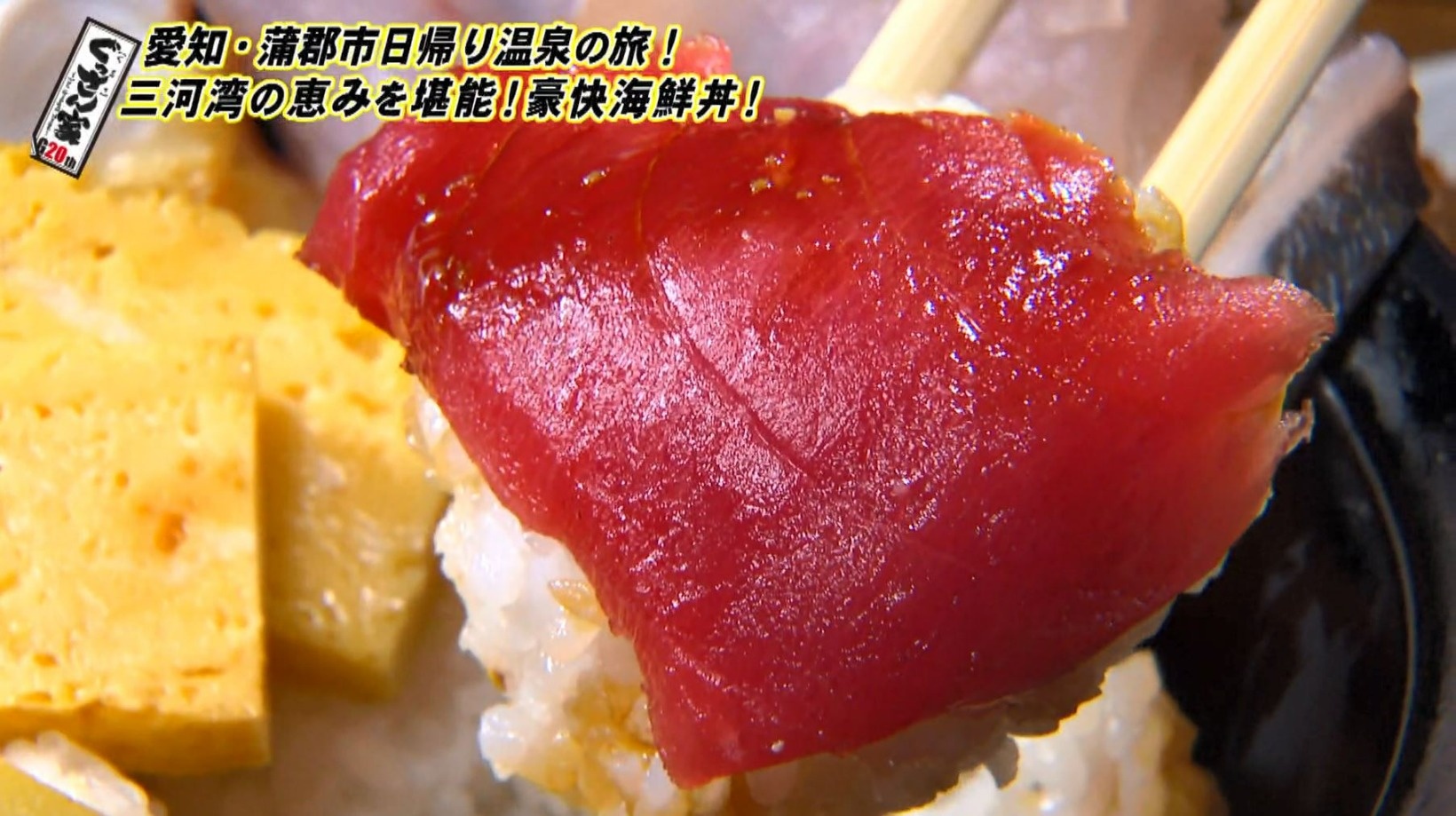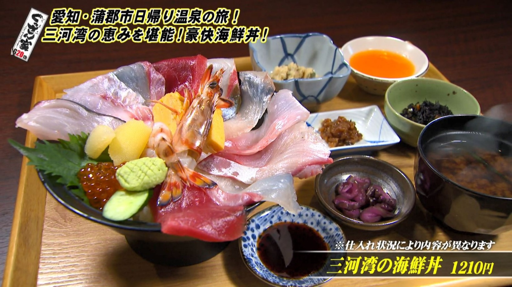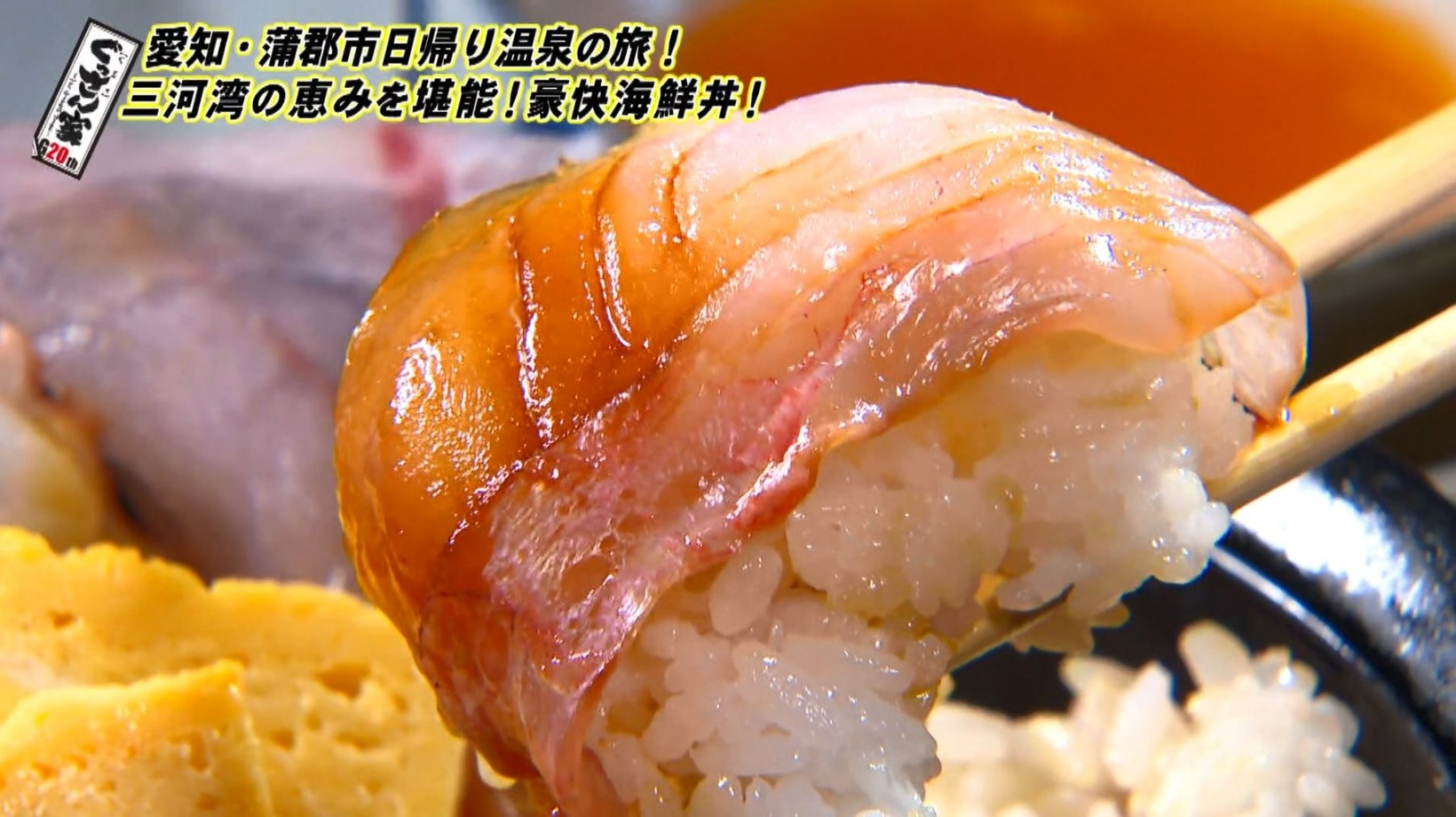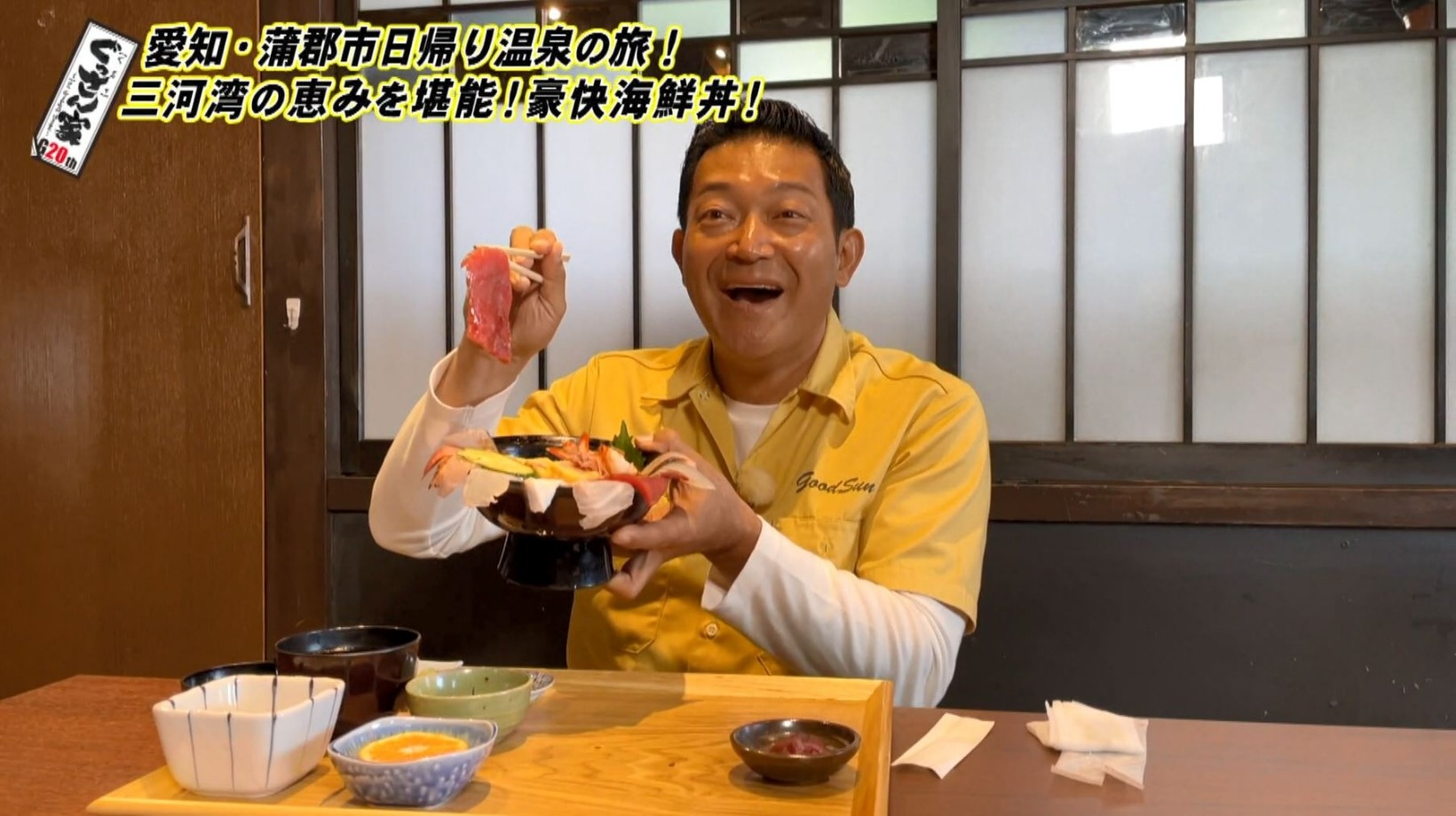 ぐっさんが選んだのは、ランチで大人気という『三河湾の海鮮丼』(1210円)。旬のサワラや、金目鯛、ノドグロなどの高級魚をはじめ、11種類のネタが味わえます。