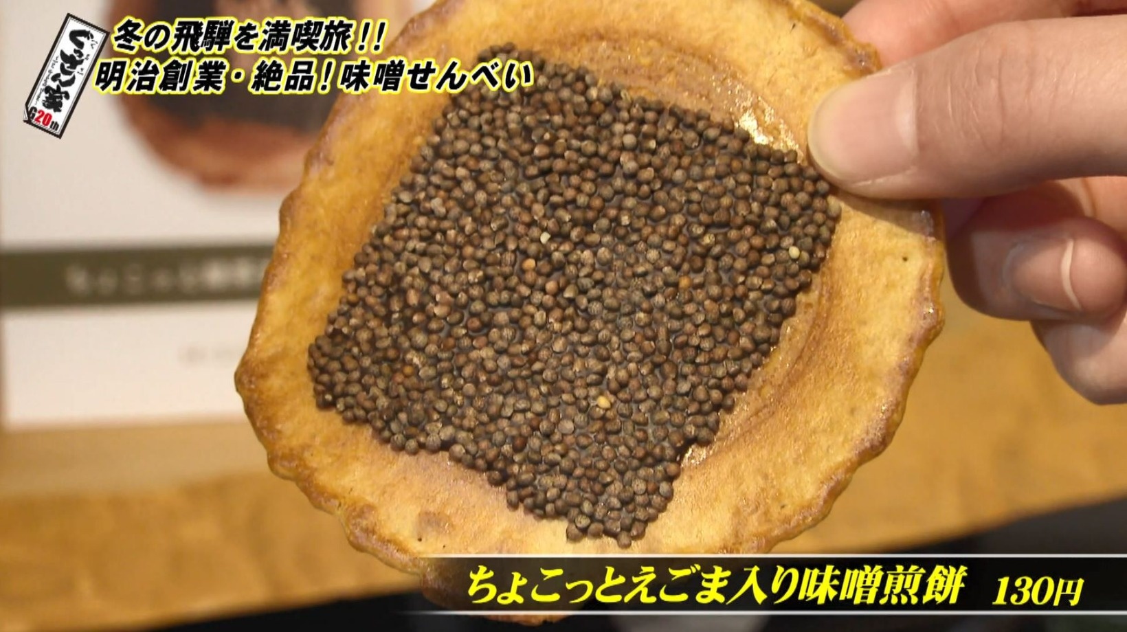 さらに、たっぷりのえごまとチョコレートのハーモニーが楽しめる『ちょこっとえごま入り味噌煎餅』(130円)もいただき、飛騨古川の銘菓を堪能しました。