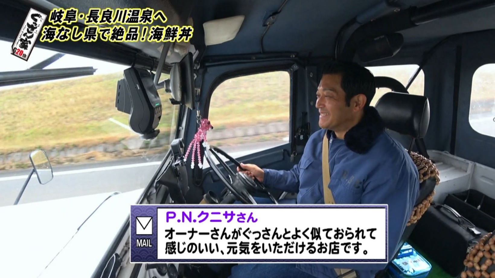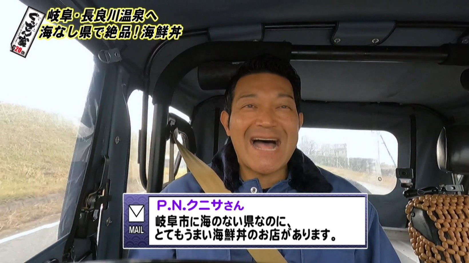 今回(2023年1月28日放送)は『ぐっさん!日帰り温泉の旅!~岐阜・長良川温泉へ~』。寒い季節に恋しくなる温泉!名古屋から1時間で行ける岐阜市の長良川温泉を目指し、寄り道しながらドライブ旅を楽しみます。