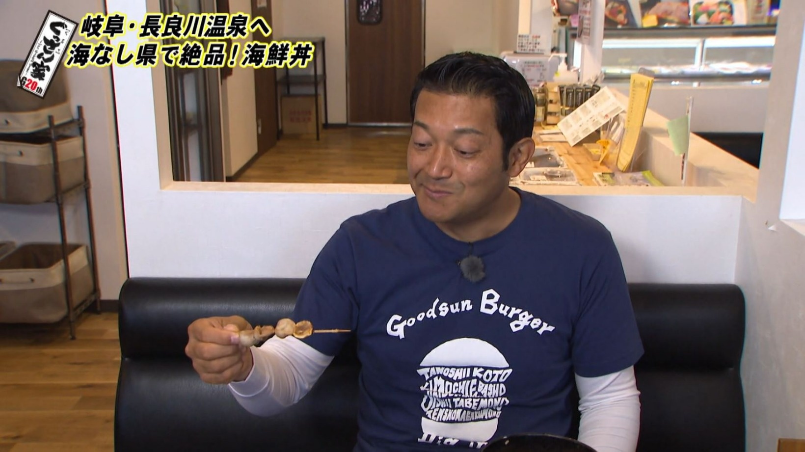 砂肝が大好きなぐっさん、ひと口食べてすぐに「最高やこれ!」と絶賛。「めっちゃうまい。これはすごいのを知ってしまいましたね。いい意味での砂肝にはない臭みといいますか…いい意味でね。これがクセになる。永遠にいけるよ!」と新たな出会いに感激!