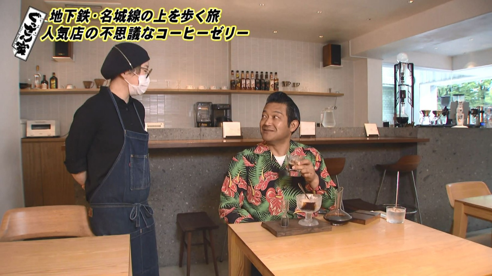 まずはウォータードリッパーで一滴一滴抽出した『水出しコーヒー』(1000円)をいただき「おいしい!すっごくコーヒーのおいしい後味がずっと残っている」と感激するぐっさん。