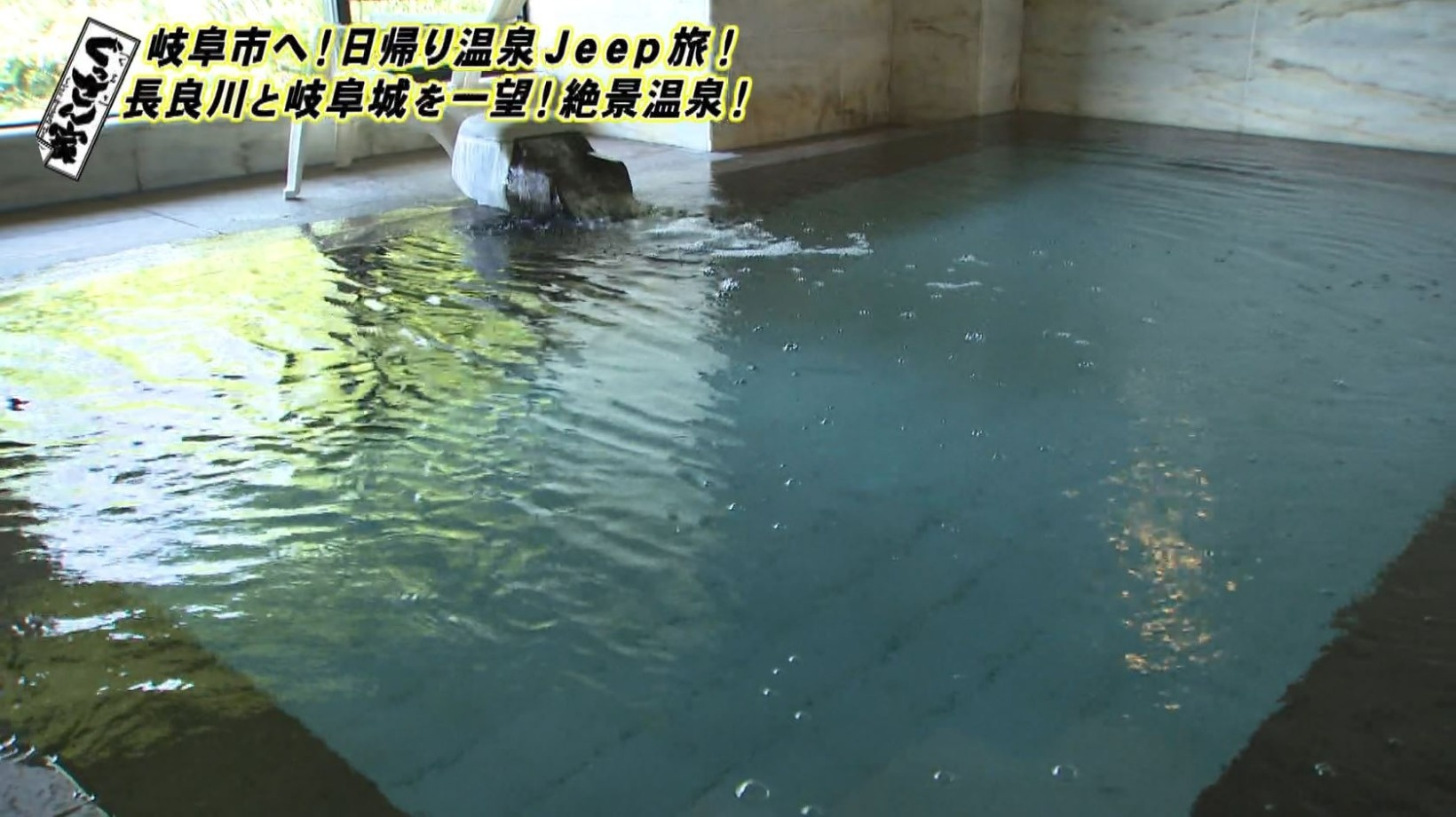 広々としたお風呂につかり「あ~!気持ちいい。泉質的にはガツンとインパクトのある印象はないですね。サラッとしていますね、どっちかというと」と温泉を楽しんだら、大きな窓から見える長良川と岐阜城の絶景を堪能!