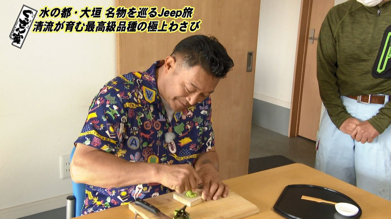 ぐっさん、特別に収穫したわさびを試食させていただきます。まずは茎に近い若い部分をすりおろして食べてみると…「辛さが立ちますかね。クンと来る。でもさわやかです」とピリリとしたわさびの風味を実感。