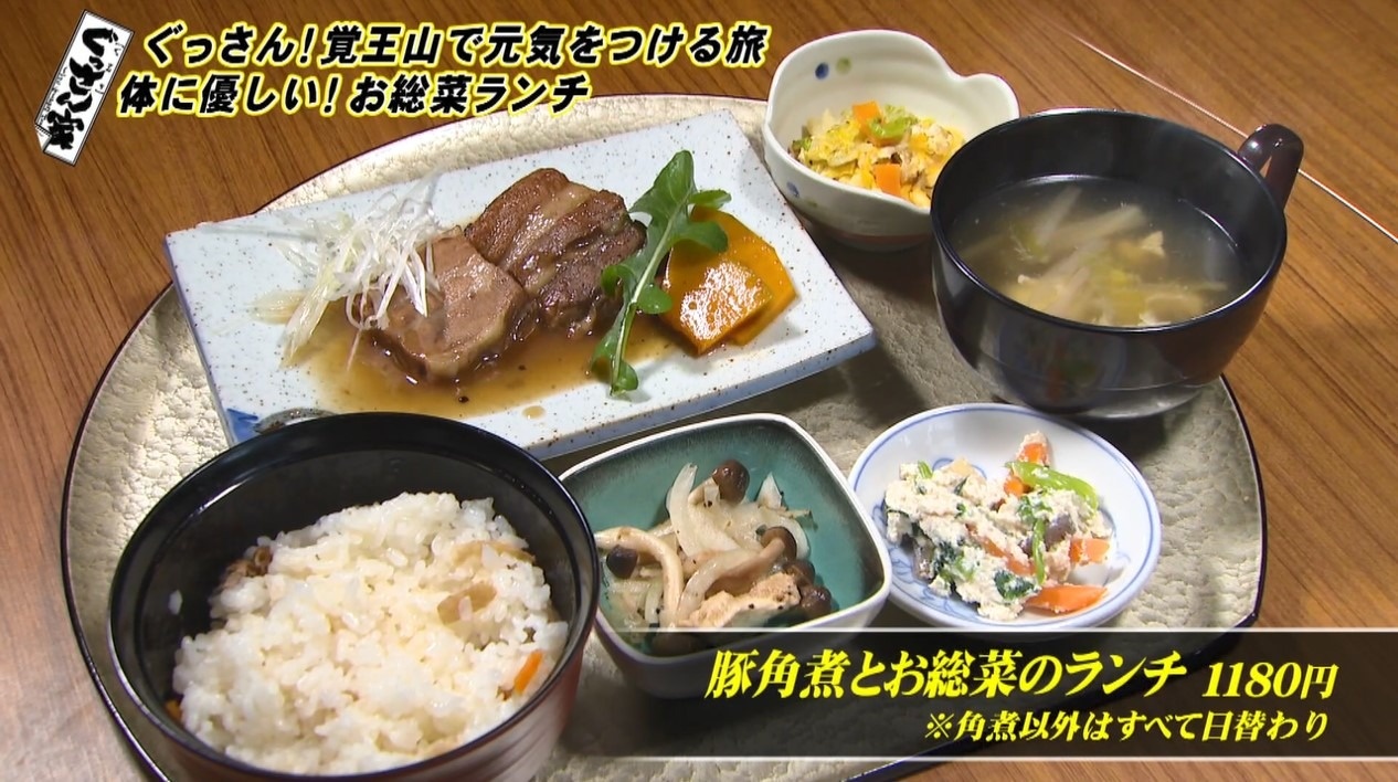 ぐっさんが注文したのは「豚角煮とお総菜のランチ」(1180円)。