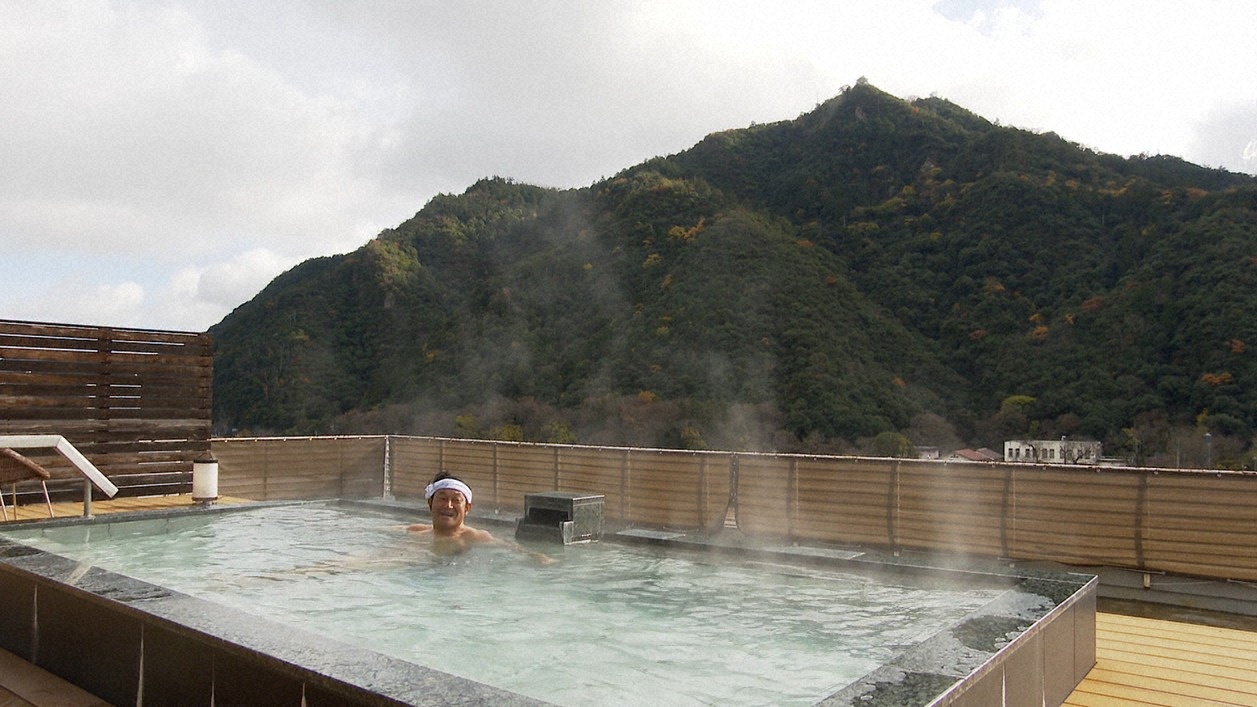 長良川温泉の湯を楽しめる自慢の露天風呂で旅のしめくくり。
