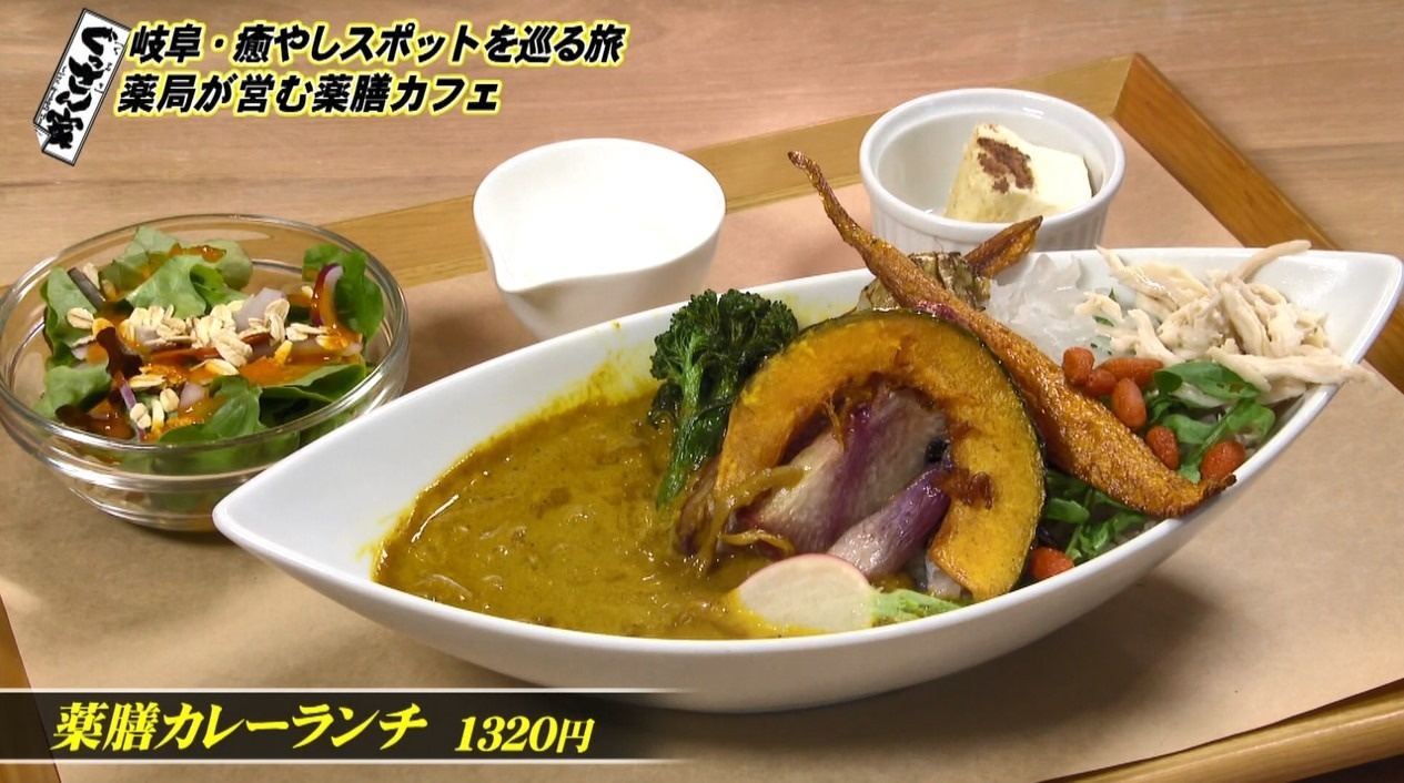 こちらは地元の薬局が運営するカフェで、薬膳食材を使ったおかゆモーニングや旬の野菜をたっぷり使ったカレーランチが評判です。