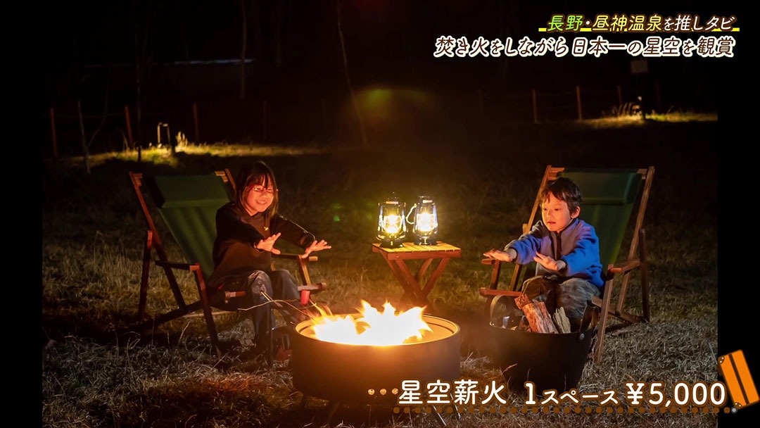 冬場は焚き火をしながら星空を眺める体験『星空薪火』(1スペース 5,000円)が人気なのだそう。