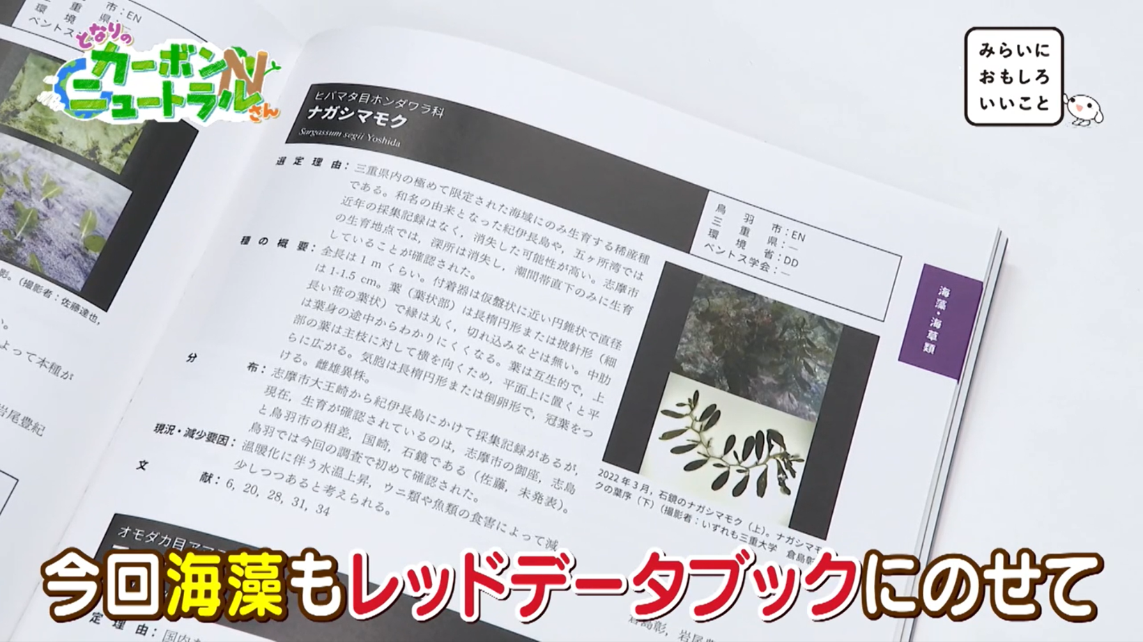 三重県鳥羽市は、豊富な海藻が残る地域。しかし、絶滅の可能性を抱える種類も多く、「鳥羽市 海のレッドデータブック」には、“海藻”が登録されています。